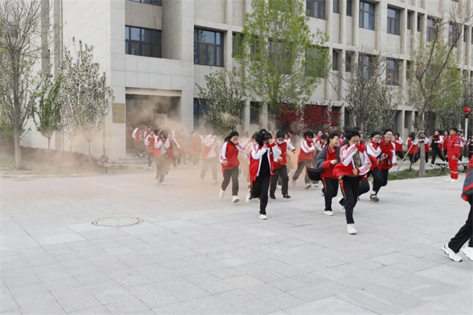 4月9日下午4时,急促的警报声拉开应急疏散演练的序幕。在老师和教官的引导下,正在宿舍休息的学生们快速、有序地按照预定的安全疏散路线撤离,到学校操场的安全地带集合。整个演练活动按照预定方案顺利进行,疏散撤离过程用时2分23秒33,达到了预期效果。