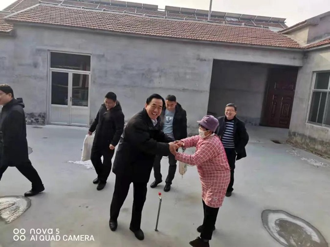 为了让村老党员和困难群众过一个祥和的春节,1月24日,滨州市高级技工学校党委书记、校长王树林,党委委员、副校长刘岳,党委委员、纪委书记、市纪委监委监察专员宋志刚来到梁才街道马店新三村进行走访慰问。梁才街道办事处党工委副书记韩先勇,马店社区党总支书记王东升,学校党政办公室主任张砚春、学校派驻“第一书记”马风光和村两委参加活动。