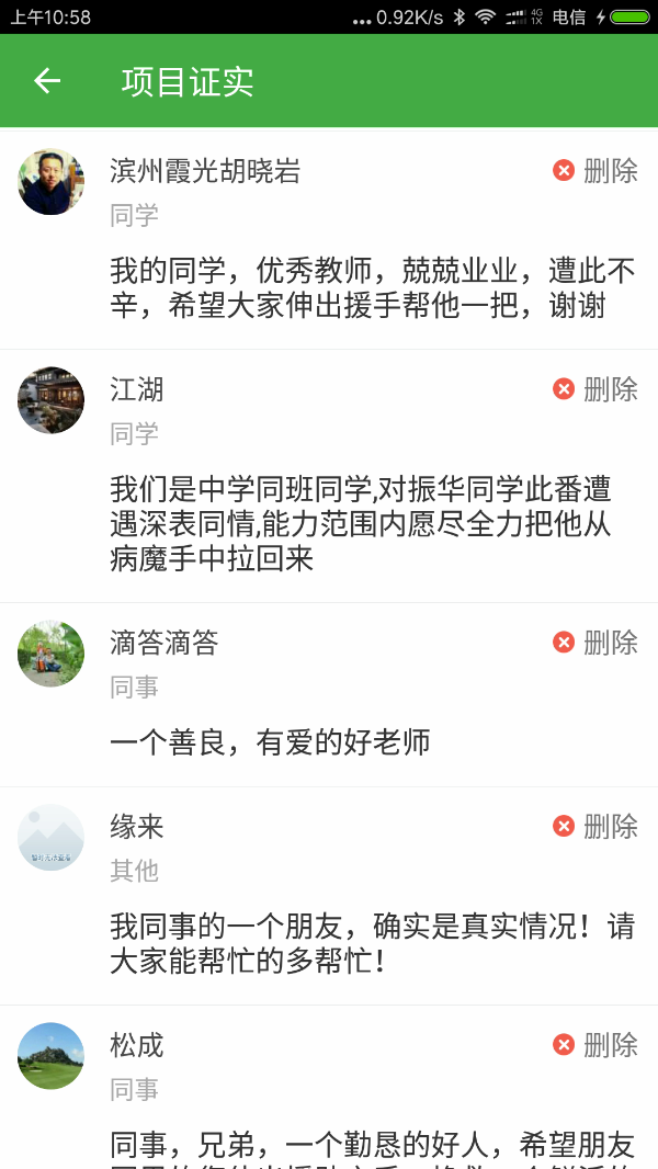 因审核非常严格,需要医院的出具不同时间的检查证明、CT报告单、大额收费单据、检查报告单,和患者不同时间的照片,还有患者家属的身份证明、照片等资料,同时对照片的清晰度夜有很高的要求,王志平老师、袁志生老师听说了我需要各种验证资料,多次去拍照为我提供验证资料,至今仍有资料需要补充完善,两位老师不辞辛苦的来回奔波。