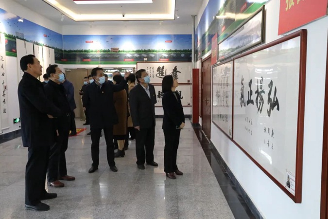 王萍一行参观了东方红广场、嘉兴楼实训基地、韶山楼红色文化,到井冈山楼参观了产教工坊、智慧教室、VR教室,随后到古田楼参观了学生公寓,到北平楼参观了廉政文化作品展、伟人塑像厅、将军书画厅、红色藏品展厅、百年党史馆等红色展馆。在浓郁的红色文化氛围中,全体人员接受了一次深刻的红色教育、党史教育、党性教育。