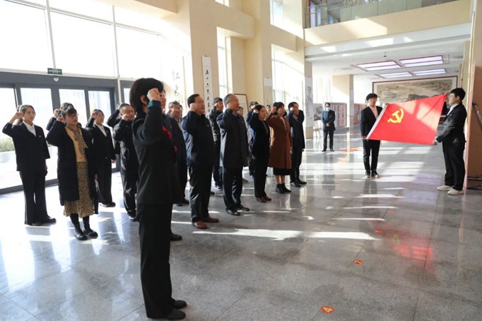 参观结束后,全体人员在北平楼一楼大厅毛主席雕像前重温入党誓词,用铿锵有力的誓言,砥砺入党初心,擦亮党员本色。