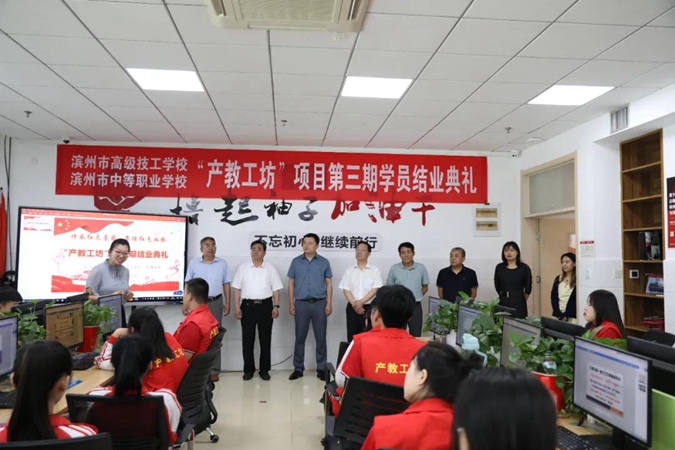 “产教工坊”项目是滨州市高级技工学校与山东世纪开元电子商务集团有限公司和山东程博教育科技有限公司共同打造的校企合作项目,已有三期学员顺利结业。