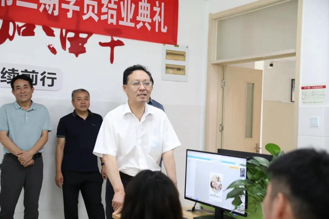 6月30日上午,滨州市高级技工学校电子商务专业“产教工坊”项目第三期结业典礼在井冈山楼107实训室举行,2019级电子商务专业的学生和老师们共同参加了本次结业仪式。学校党委委员、副校长刘仲凯,党委委员、纪委书记、市纪委监委监察专员宋志刚,红色思政教学中心主任毛岳军,招生就业科科长赵鹏飞,实训中心主任王志平,经贸管理教学中心主任朱永红以及合作企业山东程博教育科技有限公司总经理丁清雷出席活动。