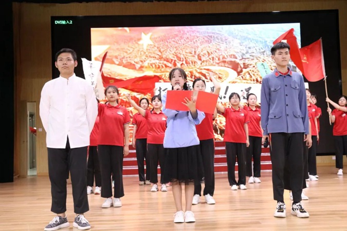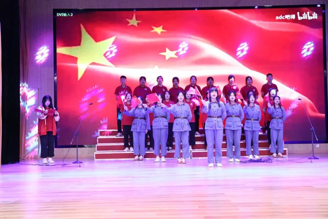 在北平楼报告厅,红色学校的红色学子们以话剧、朗诵、合唱、歌伴舞等多种形式为大家讲述了王尽美、刘伯承、邓恩铭等革命先辈的英雄事迹,表达了对党和国家的热爱和赞美,抒发了对革命前辈们为共产主义事业抛头颅、洒热血的敬仰之情。台上的同学慷慨激昂、声情并茂,台下的师生如热泪盈眶、心潮澎湃,演出现场精彩纷呈,高潮迭起,掌声阵阵。
