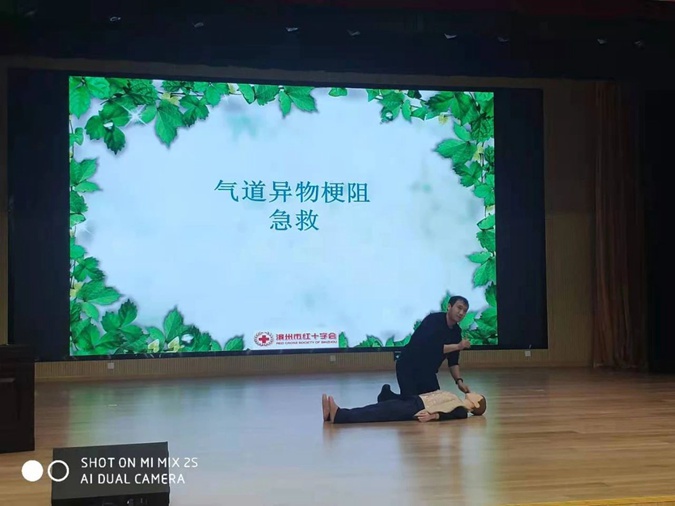 许建光老师做了应急救护知识讲座,他从现场心肺复苏、气道异物梗阻急救和常见急症的现场处理讲述了应急救护重要性和必要性,并现场示范了心肺复苏的操作过程,既增强了教师的自救互救能力,也为平安校园建设打下了基础。
