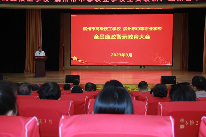 滨州市高级技工学校召开全员廉政警示教育大会暨履职、廉政警示教育集体谈心谈话会