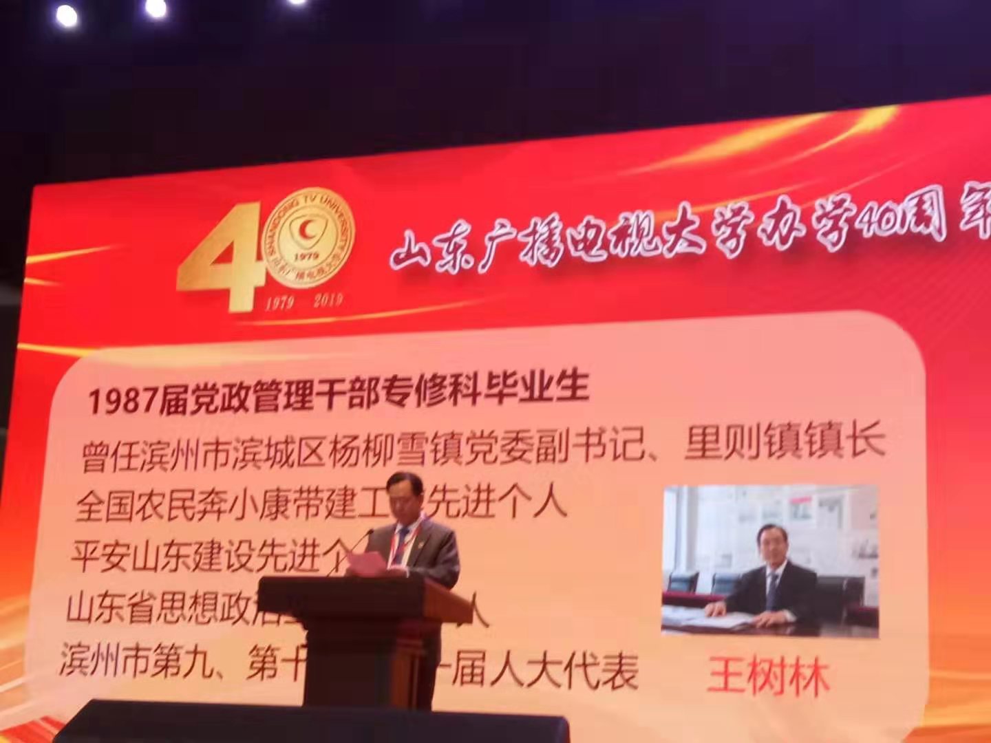 ——王树林作为优秀校友代表参加山东广播电视大学办学40周年总结表彰大会并做典型发言