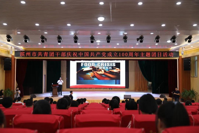 6月28日下午,滨州市高级技工学校北平楼报告厅内掌声阵阵,党委书记、校长王树林正在为全市团干部代表做党史教育报告。