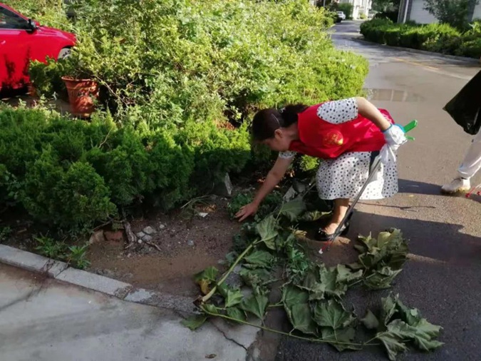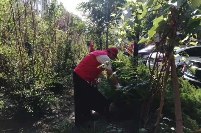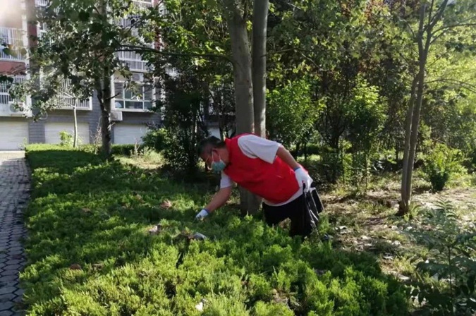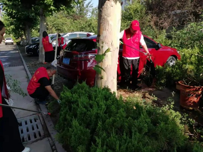 志愿者身穿红马甲,手持卫生工具,顶着炎炎烈日,对责任区绿化带、停车位的各类垃圾进行了彻底清理,对楼道内的小广告进行了全面清除,使居民环境焕然一新。