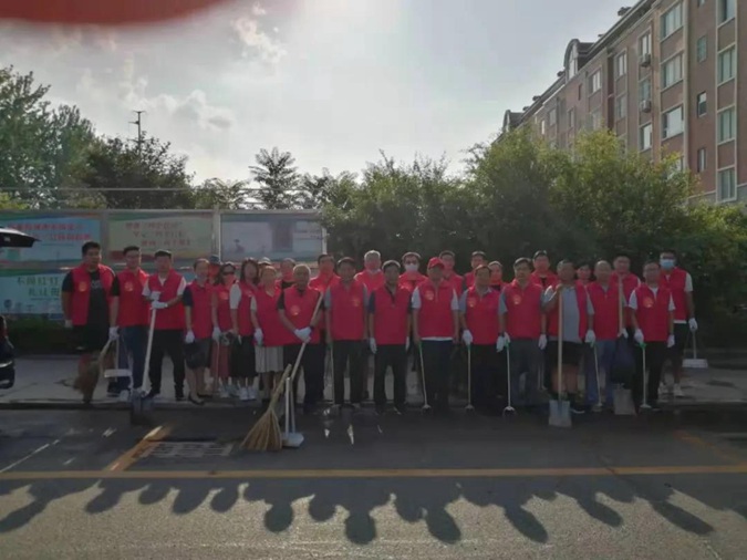 8月1日上午,滨州市高级技工学校30余名教职工在学校党委委员、纪委书记、市纪委监委监察专员宋志刚带领下,来到市西街道泰山名郡小区开展“品质滨城 你我同行”新时代文明实践志愿者服务进社区活动。
