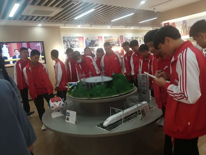 在一楼伟人塑像厅和红色展藏馆,同学们瞻仰伟人塑像,缅怀革命先驱的丰功伟绩;在优秀毕业生荣誉墙前驻足,杜龙飞、李梦迪、梁光德、韩振凯,一个个闪光的名字激励大家勇往直前,立志报国。