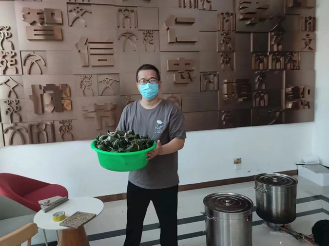 在包粽子过程中,大家互相交流,互相学习,空气中弥漫着粽叶和糯米的香气,现场气氛融融,欢声不断。活动最后,兴业银行工作人员为大家送来了艾叶,祝福大家节日快乐。