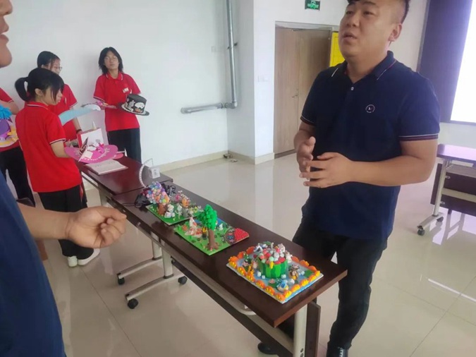 宗昊阳一行首先参观了学生手工及3D打印作品,对学校红色教育表示赞叹,对学生们的红色作品也十分认可,并表示本次专利培训对学生了解专业知识和如何申报专利将具有指导意义,希望大家用心学习。