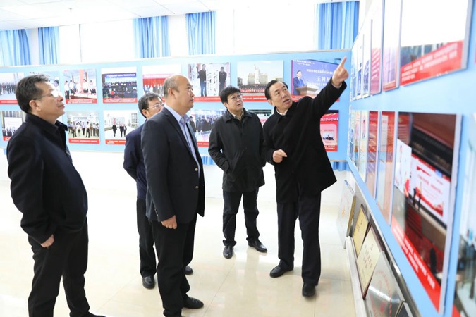王玉革一行参观了东方红广场、韶山楼红色育人展厅、井冈山楼智慧教室、北平楼红色展厅和电子阅览室,并深入嘉兴楼实训基地和北平楼阅览室,实地感受了学校浓郁的红色育人氛围和“传承红色基因,培养时代新人”的红色育人理念。