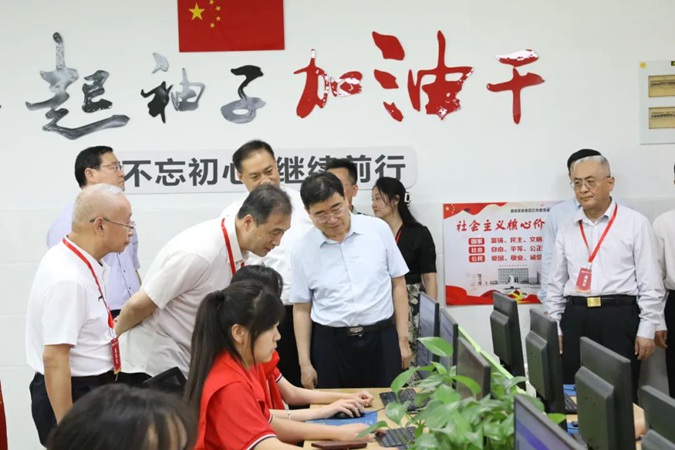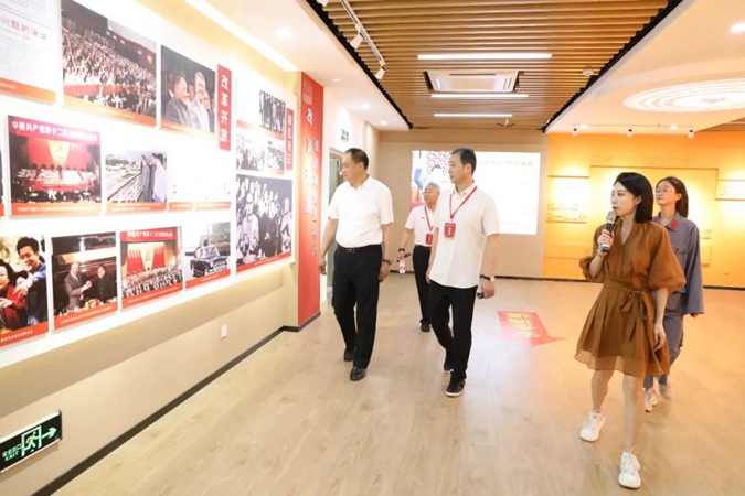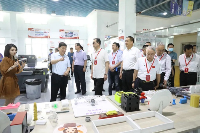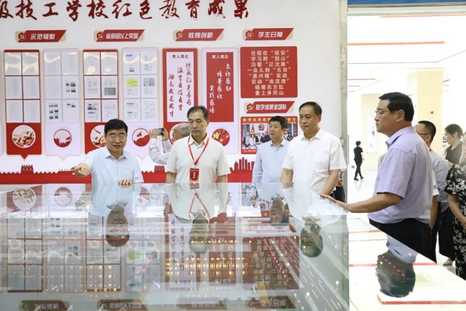 来访专家、领导参观了东方红广场、嘉兴楼实训基地、韶山楼及井冈山楼校企合作项目产教工坊、京东电商直播工作室,到北平楼参观了红色藏品展馆、伟人塑像厅、校史馆、党史馆、国防教育展馆等红色展馆,对学校将红色教育和国防教育相结合,全力打造一处不是军校的军校,铸造一所不是党校的党校的经验做法给予高度赞扬。