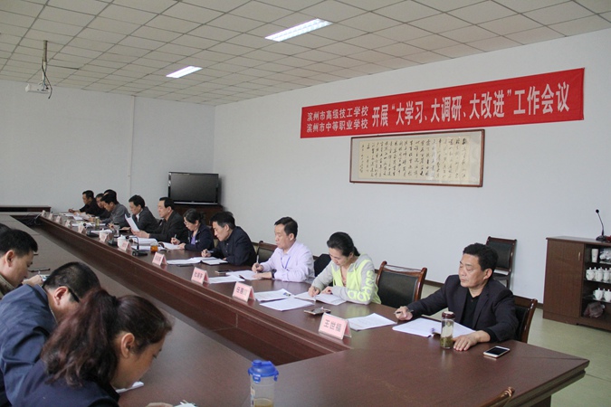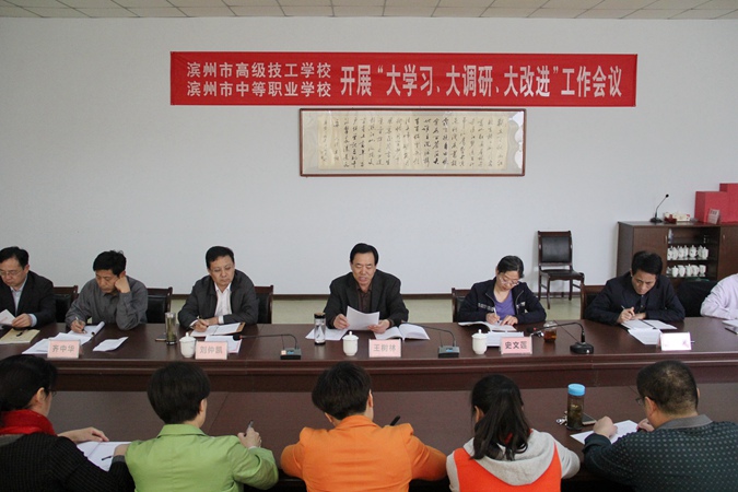 史文莲同志宣读了《滨州市高级技工学校“大学习、大调研、大改进”实施方案》。要求将此次活动与加快推进新旧动能转换重大工程相结合,与深化“学标杆、争一流、上水平”解放思想大讨论活动相结合,与千名干部驻村“访民情、听民声、解民忧”活动相结合,与“百名干部联百企”活动相结合,深化学习讨论、深入调研排查、深度改进提升,努力实现“四个进一步”,进一步牢固树立“四个意识”、坚定“四个自信”,进一步落实新时代党的建设总要求,进一步推动思想再解放、改革再深入、工作再抓实,确保习近平新时代中国特色社会主义思想和党的十九大精神在我校落地生根,确保各项工作任务高质高效完成。