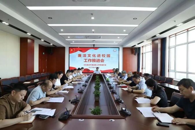 6月8日下午,滨州市高级技工学校(滨州市中等职业学校)召开“廉洁文化进校园”工作推进会,学校党委委员、纪委书记、市纪委监委派驻监察专员宋志刚,相关科室、教学中心部负责人参加会议。