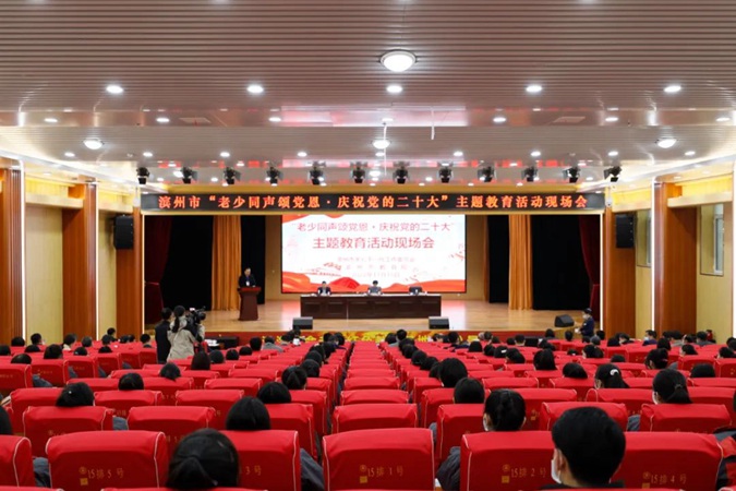 为庆祝党的二十大胜利召开,营造青少年党史学习教育氛围,11月18日,滨州市关工委联合滨州市教育局组织的“老少同声颂党恩·庆祝党的二十大”主题教育活动现场会在滨州市高级技工学校(滨州市中等职业学校)召开。