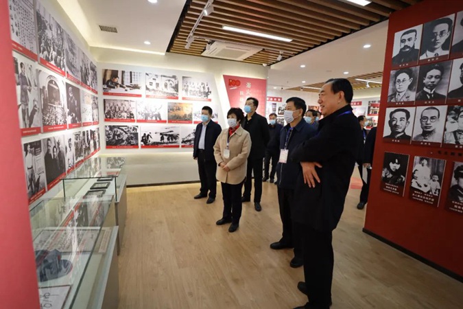 会议开始前,全体人员参观了滨州市高级技工学校红色校园。从东方红广场到嘉兴楼实训中心、韶山楼,穿过红色连廊,到井冈山楼“产教工坊”、京东直播实训室、VR教室;经“南泥湾”师生劳动基地,到古田楼学生公寓;最后到北平楼伟人塑像厅、红色藏品展厅、图书馆、百年党史馆、校史馆等红色展馆,浓郁的红色氛围和特色鲜明的党史教育引人赞叹。