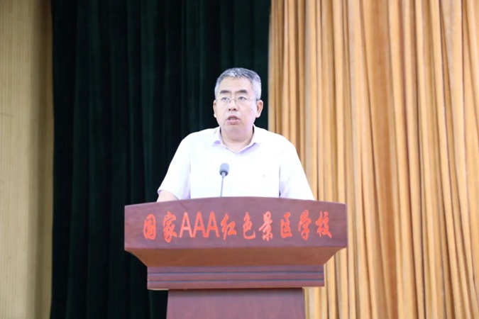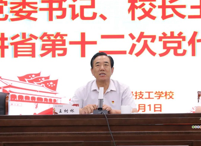 王树林为全体人员讲专题党课,对省第十二次党代会精神作宣讲,并进行了全面从严治党廉政警示教育集体谈话。要求全体党员干部和教职工要心存敬畏,慎独慎初,廉洁自律,廉洁从教,做德艺双馨的人民教师。最后,他从“‘双庆祝’(庆祝山东省第十二届党的代表会议召开,喜迎二十大胜利召开)要掀起高潮;‘双红校’(不是党校的党校,不是军校的军校)要发扬光大;‘双优校’(山东省优质示范校、山东省高水平中等职业学校)要全力推进;‘双创建’(创建全国文明单位、创建全国雷锋学校)要全力以赴;‘双严管’(从严治校、从严治党)要持之以恒”五个方面对学校更好开展党的建设工作作出指示。