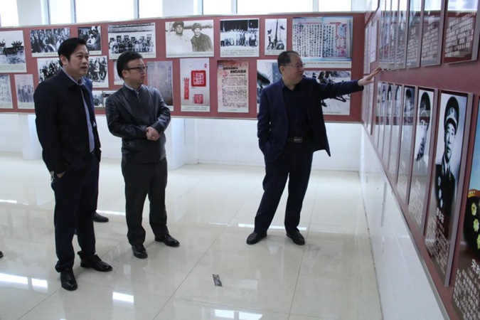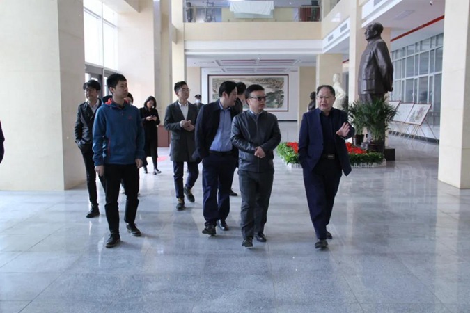 考察组一行参观了东方红广场、红色育人展厅、红色藏品展厅、红色图书馆等,听取了学校红色办学情况介绍。刘泽平高度赞扬了学校红色文化建设及“打造一处不是军校的军校,铸造一所不是党校的党校”的办学理念,并就校企合作事宜与学校领导进行了交流。