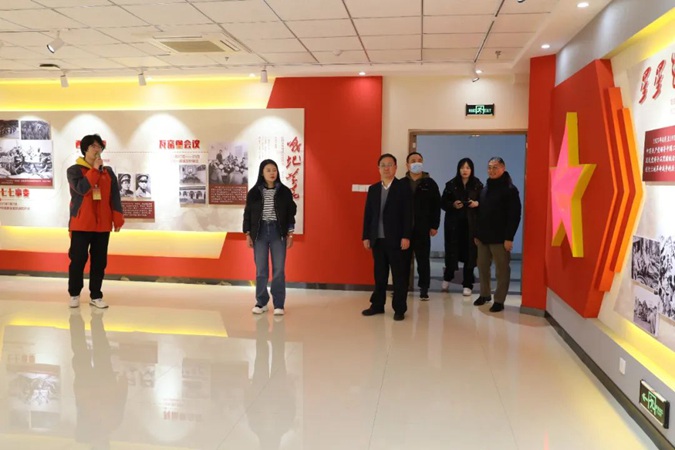 宋百丽一行参观了东方红广场 、嘉兴楼实训中心;经红色连廊,到井冈山楼参观了校企合作项目“产教工坊”、京东直播实训室;经“南泥湾”师生劳动基地,到古田楼参观了学生公寓,最后到北平楼参观了伟人塑像厅、红色藏品展厅、百年党史馆、校史馆、红十字展厅、国防教育展馆等红色展厅。宋百丽对滨州市高级技工学校红色办学经验做法给予高度赞扬,并就教育教学、学生管理等工作与陪同领导进行交流。