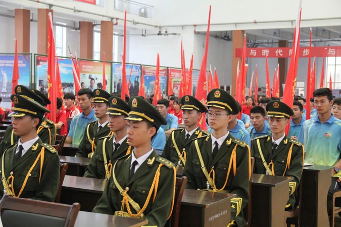 学校团委副书记王锡辉宣读《关于向山东省励志之星、杭州大火“救火勇士”优秀校友李梦迪学习的倡议书》。