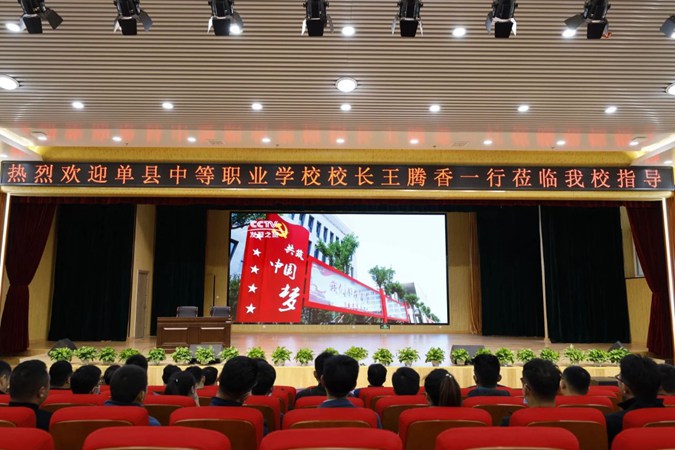 王树林介绍了学校基本情况,重点介绍了红色办学情况及取得的成绩。王腾香感谢王树林校长的热情接待,表示通过参观红色校园受到了精神的洗礼,对“传承红色基因,培育时代新人”的育人理念给予高度评价。他介绍了单县职业中等专业学校近几年的发展情况,希望双方加强交流,共谋发展。