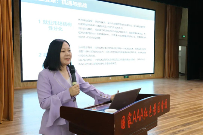 “职业生涯规划不是定死路线,而是学会主动成长。”于盼老师建议同学们分三步:第一步“认识自己”,通过学校实训课发现兴趣点——喜欢动手实操就钻研技术,擅长沟通协调就关注服务岗位;第二步“链接行业”,利用学校校企合作资源参观4S店、维修厂,参加技能比赛等活动积累实践认知;第三步“小步快跑”,从每天认真完成实训作业、考取汽车维修工初级证等小事做起,逐步积累竞争力。