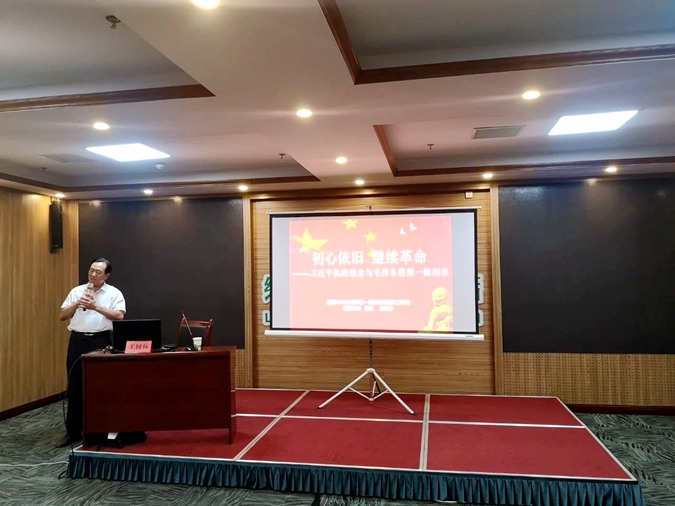 王树林以《初心依旧 继续革命——习近平执政理念与毛泽东思想一脉相承》为题,从习近平总书记的毛泽东情节、习近平为什么提出不忘初心、习近平执政理念与毛泽东思想一脉相承三个方面展开论述,为参加培训的60余名青年名师带来一堂思想深刻、精彩纷呈的思政课。这也是王树林的第184场红色公益讲座。