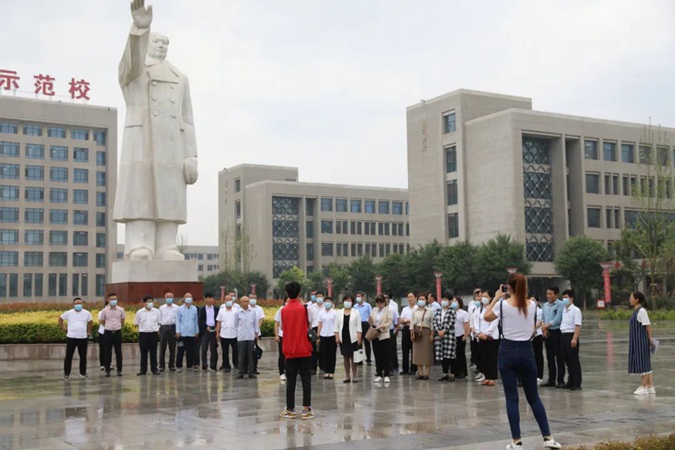 6月10日上午,滨州经济技术开发区沙河街道百川小学党支部书记王青带领45名党员干部到滨州市高级技工学校参观学习,红色思政教学中心主任毛岳军,机关党委委员、行政党支部书记张瑞陪同参观。