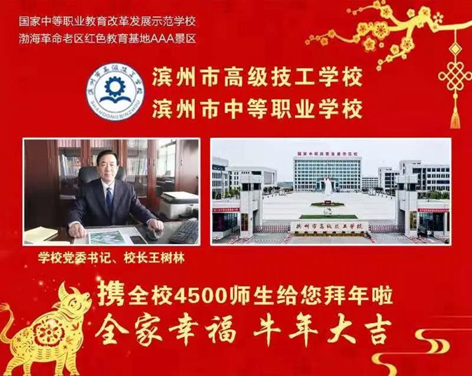 日月开新元,天地又一春。在这辞旧迎新、继往开来的美好时刻,滨州市高级技工学校(滨州市中等职业学校)4500名师生给您拜年啦!祝您新春快乐、万事如意、牛年大吉!