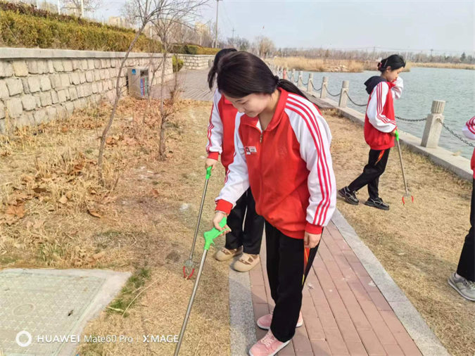 活动中,同学捡拾垃圾,清理公园的卫生死角,并向市民宣传文明理念,用实际行动践行雷锋精神,引导更多人参与志愿服务活动。