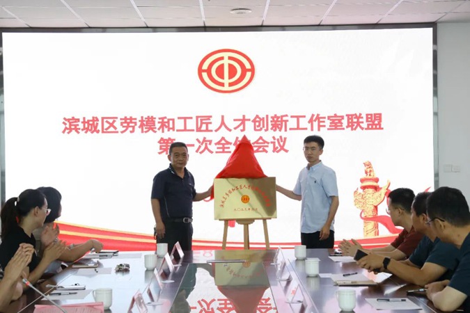 随后,石光磊及联盟第一届委员会主任何旺同志为滨城区劳模和工匠人才创新工作室联盟揭牌。