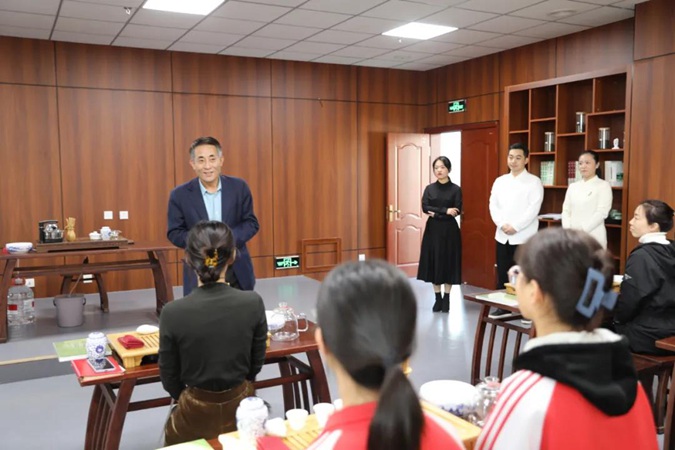 作为滨州市茶文化协会实训基地,滨州市高级技工学校成立了茶艺社团,邀请了滨州市茶文化协会常务副会长张群、副会长仝新龙、秘书长大宇共同为社团的师生们开启茶艺第一课。