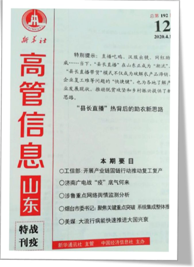 4月1日,滨州市高级技工学校党委书记、校长王树林在《新华社·高管信息》(战疫特刊)2020年第12期(总第192期)发表署名文章《用红色文化浸润学生 建特色名校融入洪流》。