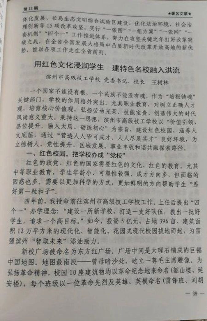 《新华社·高管信息》(战疫特刊)发表滨州市高级技工学校党委书记、校长王树林署名文章:用红色文化浸润学生