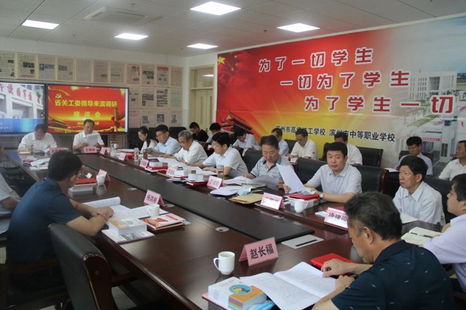 6月11日,山东省关工委常务副主任、青岛市政协原主席(副省级)张少军,省关工委副主任(正厅级)时民一行到滨州市高级技工学校调研关心下一代工作。滨州市委常委、组织部长曾晓黎,市关工委常务副主任李成明,市关工委副主任、秘书长王观庆,市关工委副主任、市委组织部副部长、市委老干部局局长王亨波,市委老干部局副局长、关心下一代教育发展中心主任宁绍海,市关心下一代教育发展中心副主任刘鹏,区委副书记、区长张瑞杰,区委常委、组织部长王丽,区关工委常务副主任徐建设,区关工委副主任赵长福,区委组织部副部长、老干部局局长高凤阁,区关工委教育发展中心主任刘金堂,学校党委书记、校长王树林,党委副书记、副校长孟维赞,党委委员、副校长刘仲凯,党委委员、副校长刘岳,党委委员、纪委书记、市纪委监委监察专员宋志刚陪同调研。