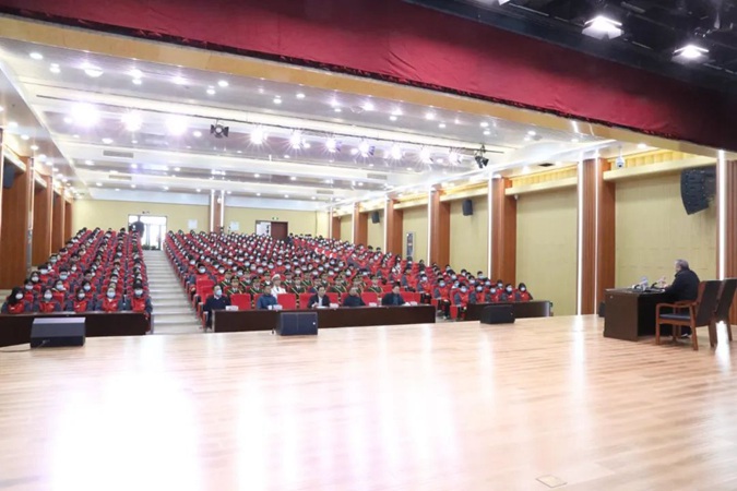 2月24日上午,滨州市高级技工学校北平楼报告厅内座无虚席,气氛热烈 ,原中国人民解放军空军参谋部直属部队党委副书记、空降兵第15军副军长周继光将军为全校师生作了一场精彩的爱国主义教育报告会。学校党委书记、校长王树林主持报告会,全校5000名师生分别在报告厅现场和通过网络直播同步收听收看。