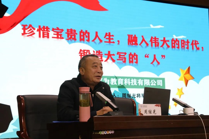 周继光将军以《珍惜宝贵的人生,融入伟大的时代,锻造大写的“人”》为主题,结合自己的从军经历,从人生与价值、特色与标准、习惯与养成、文化与修养、求索与路径五个方面对青少年学生如何更好地成长成才、报效祖国作了深入系统的阐述。最后,周将军希望同学们要常怀感恩之心,爱党爱国爱家,把个人理想、个人成长融入实现伟大强国梦的实践中,学做人、学文化、学技能,听党话、感党恩、跟党走,树立爱国之志,实践爱国之行,为实现中华民族伟大复兴的中国梦贡献自己的青春和力量。