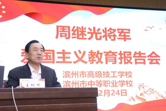 周继光将军到滨州市高级技工学校为全校师生做爱国主义报告会
