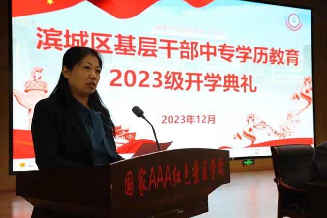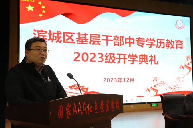12月22日,滨城区2023级基层干部中专学历教育开学典礼在滨州市高级技工学校北平楼报告厅举行。中共滨城区委组织部副部长、编办主任张波,滨州市高级技工学校党委副书记、副校长孟维赞,各乡镇(街道)组织委员出席仪式,滨州市高级技工学校电大分校教师,2023级基层干部中专学历教育全体学员参加,滨州市高级技工学校招生就业科科长赵鹏飞主持。