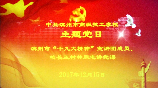 2017年12月15日,市十九大精神宣讲团成员、校长王树林同志应邀给滨州市高级技工学校全体党员干部上了一堂生动的十九大精神党课。