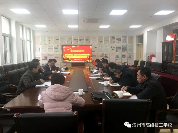 1月17日下午,滨州市高级技工学校党委在学校韶山楼会议室召开党风廉政建设、全面从严治党专题党委会议。学校党委书记、校长王树林,党委委员、副校长刘仲凯,党委委员、副校长刘岳,党委委员,纪委书记、市纪委监委监察专员宋志刚及学校中层干部参加会议。