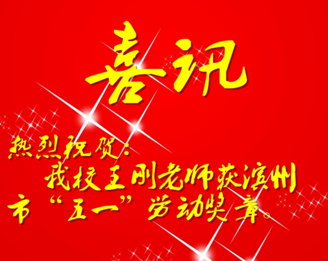 热烈祝贺我校王刚老师获滨州市“五一”劳动奖章