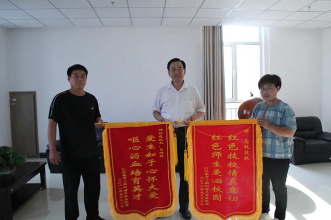 6月3日,两面锦旗送到滨州市高级技工学校,“爱生如子 心怀大爱 呕心沥血 培育英才”赠予红色校长王树林;“红色技校情真意切 红色师生爱洒校园”赠予学校。
