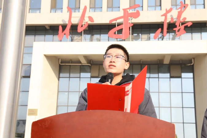 上午十点,全体师生肃立于东方红广场,主持人宣布仪式开始,国旗护卫队迈着铿锵的步伐行至升旗台,伴随着雄壮的《义勇军进行曲》,鲜红的五星红旗冉冉升起,全体师生齐唱国歌,行注目礼。