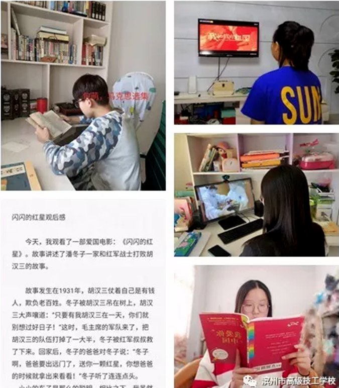 新型冠状病毒感染的肺炎疫情发生后,滨州市高级技工学校坚决落实中央、省、市、区部署要求,积极应对,充分利用“互联网+教育”优势,利用云视讯、天翼云、钉钉、qq等平台,为广大学生提供丰富多样的优质网上学习资源,积极开展“空中课堂”教学活动。