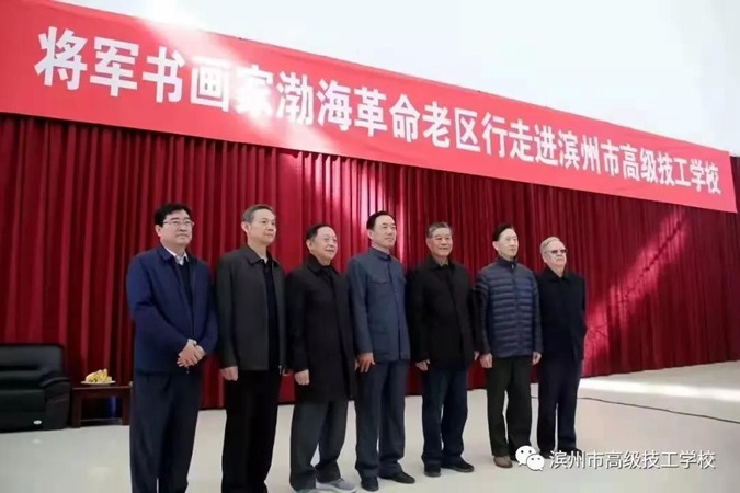 ▲将军书法家“渤海革命老区行”走进滨州市高级技工学校