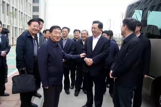 ▲周恩来总理卫士长高振普将军、秘书纪东将军参观考察滨州市高级技工学校